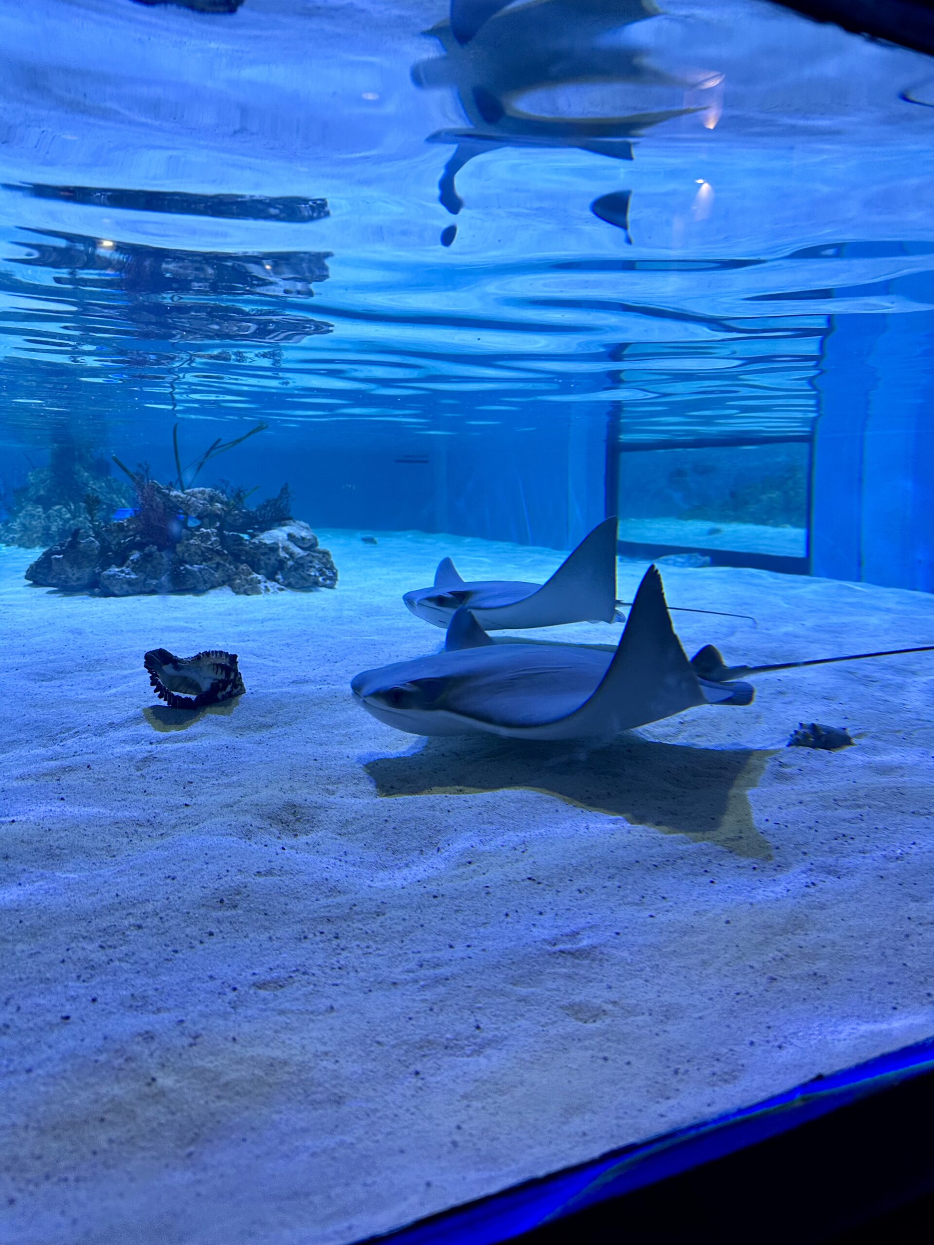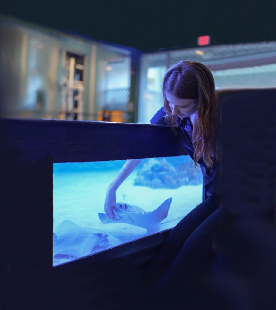 At the IMAG, we put the fun and safe back into stingray experiences. IMAG trims the barbs of our stingrays (like trimming a fingernail, it doesn’t hurt the rays) to ensure an enjoyable, safe, fun, hands-on experience for our guests. Besides fostering a connection to coastal ecosystems and the ocean, StingRay Bay Touch Tank provides unique educational opportunities to learn about stingrays and to feed and feel them. People are invited to rinse their hands in water only, without using soap, and to use two fingers only, their index and middle fingers, to gently touch the wings of the stingrays, to feel their soft, supple skin, as they glide by gracefully. Helping ensure our stingrays are kept safe from injury, we encourage guests to avoid touching their backs, heads, or other body parts. Please, just touch their wings. After our guests touch the rays, we encourage them to wash their hands with soap and water and to rinse them thoroughly. It’s always a good and healthy practice to wash your hands, especially after touching fish.
