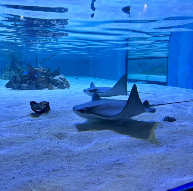 COWNOSE RAYS IN STINGRAY BAY Peaceful, in their natural beauty and gracefulness, Cownose Rays glide...